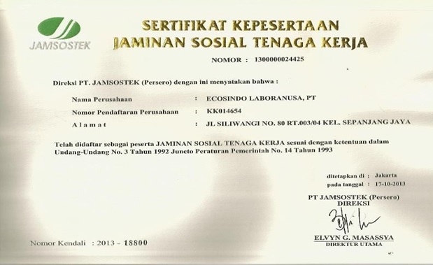 3. PARTICIPATION CERTIFICATE OF "JAMINAN SOSIAL TENAGA KERJA".
